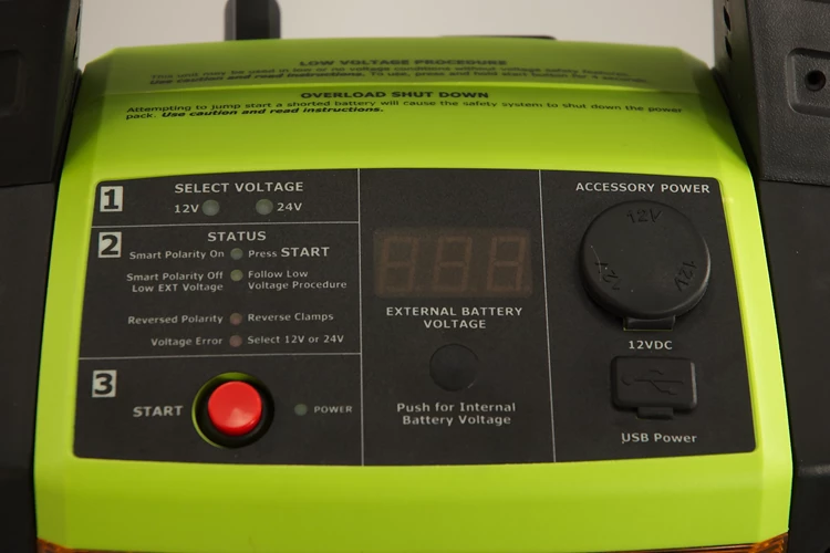 - Accessories/Features: 12V Outlet Polarity Alarm, Voltage Protection, Flashing/Work Light, USB Port