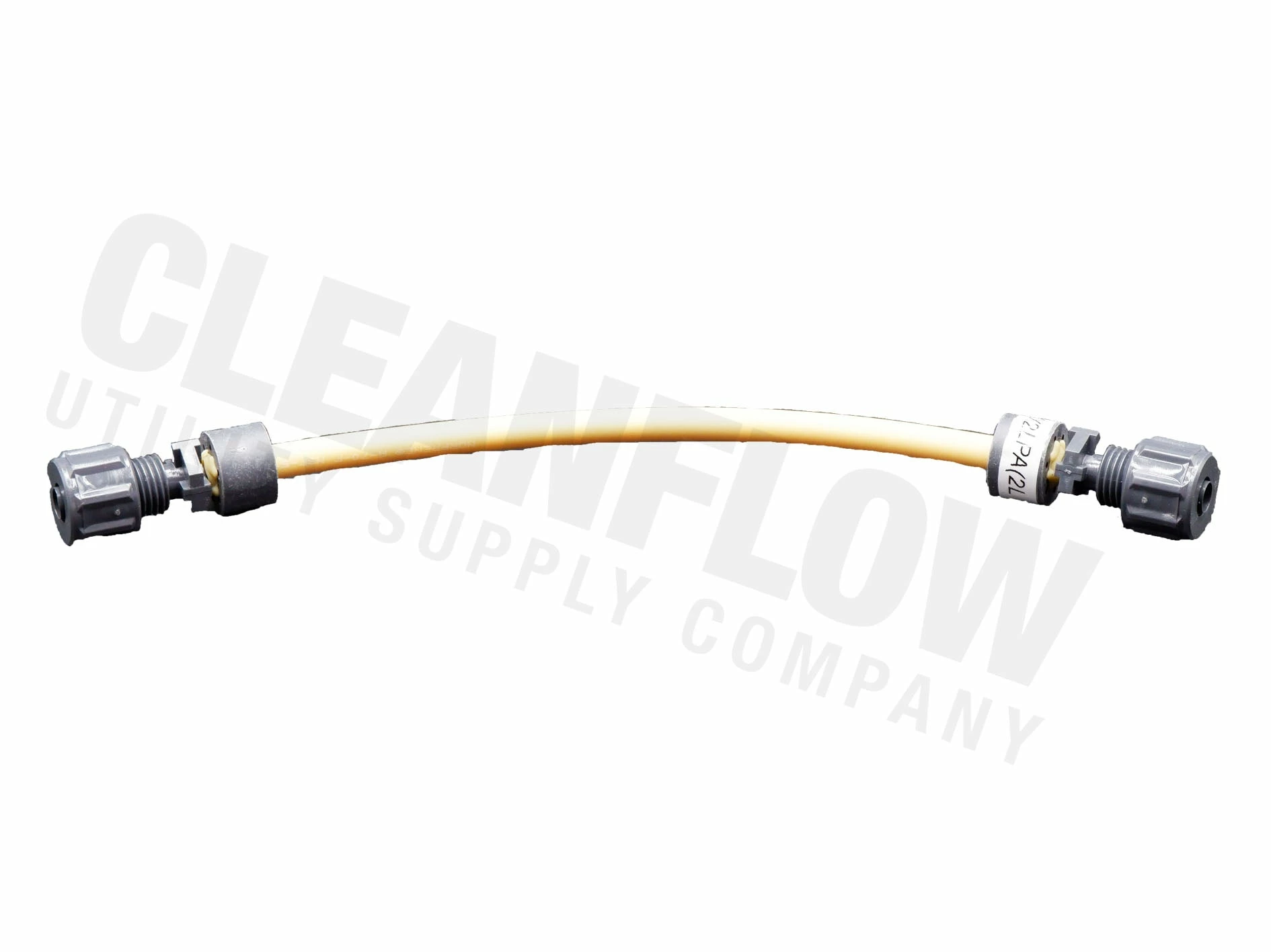 Replacement peristaltic tube assembly is ready to install with attached 1/4″ compression nut with ferrule.