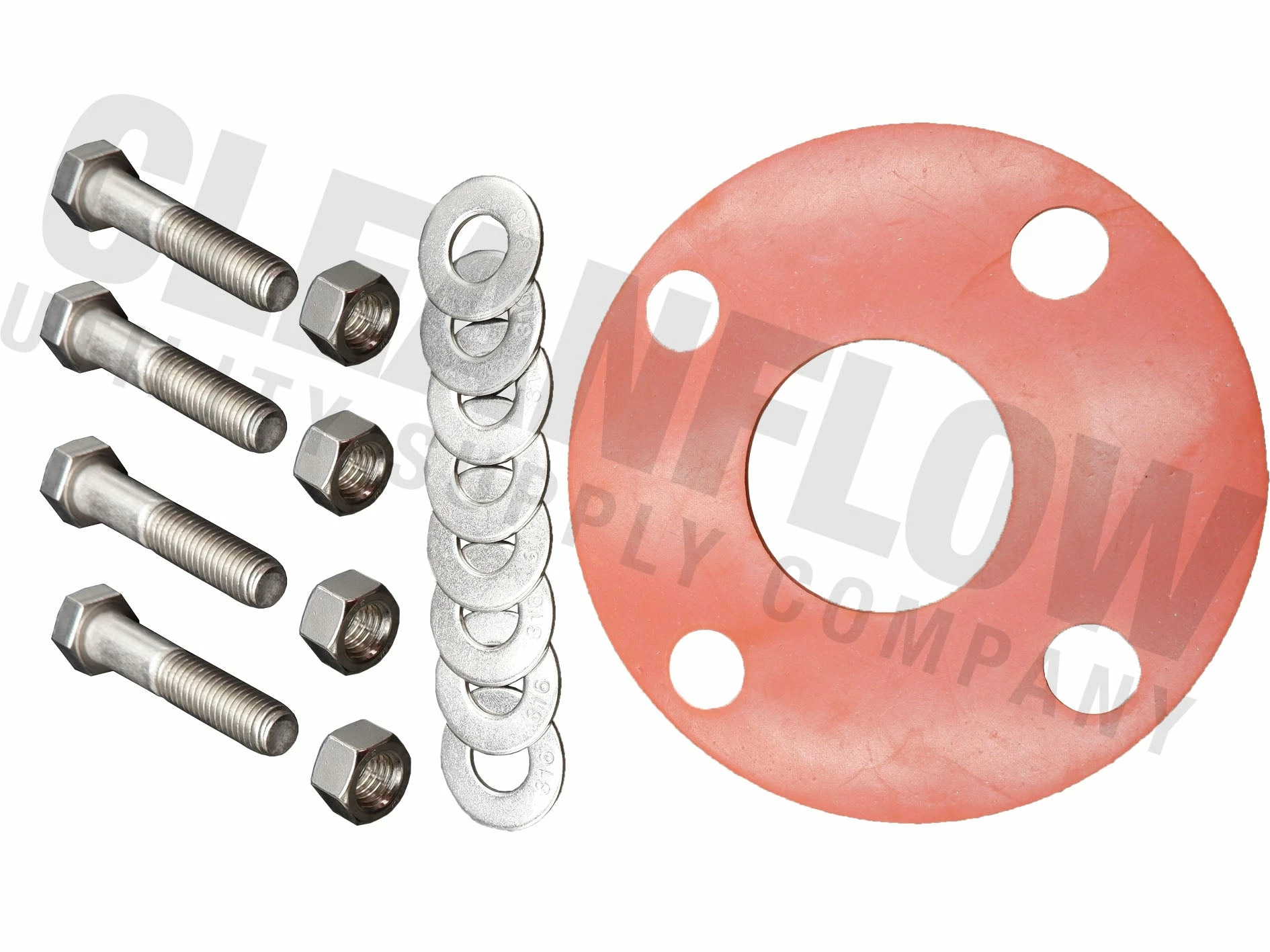 316 Stainless Steel Flange Bolt Packs include a 1/8″ thick full face red rubber flange gasket and the appropriate 316 stainless steel hardware to complete a 150# ANSI flange to flange connection.