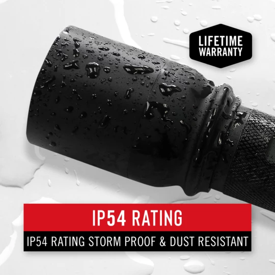 Featuring COAST Rechargeable Dual Power technology, this IP54 dust-resistant and storm proof flashlight is powered by a COAST ZITHION-X™ rechargeable battery (charging cable included) but can also run on standard alkaline AAA’s (purchased separately)—with a real-time power indicator so that you always know when to power up.