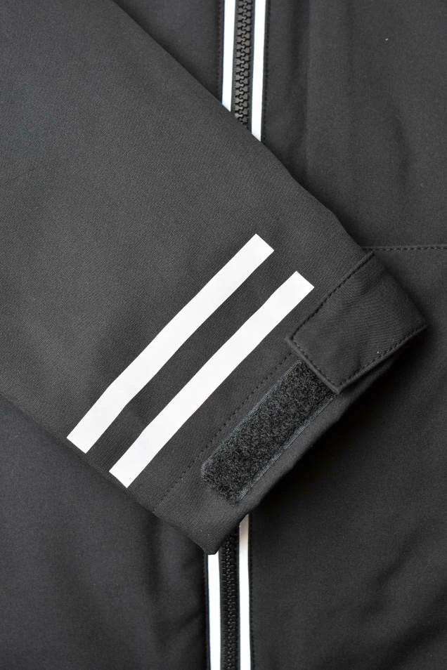 - Adjustable hook & loop cuffs and waist draw cord to customize fit and block wind and wet.