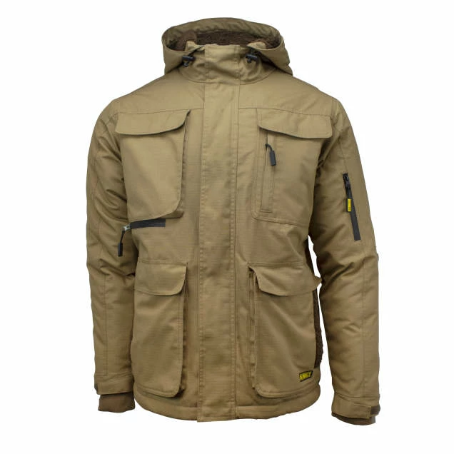 The DEWALT® DCHJ091 Men’s Heavy Duty Ripstop Heated Jacket provides hours of continuous heat with 3 heat zones and 3 temperature settings. The Ripstop outer shell and Sherpa fleece lining provide warmth and protection from cold environments. Pockets with snap closure flaps, zippers and waterproof zippers help to keep tools and accessories secure and your hands free to work. This item comes in Bare and Kitted versions. The Bare version can be used with your DEWALT 20V battery, and the Kitted version includes a 20V battery and charger. Both versions come with the DCB092 USB power adapter which can also be used to charge your accessories.