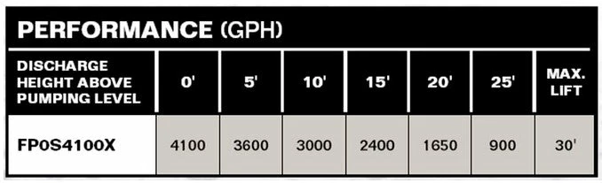 Flow at 0′ Lift | 4100 GPH |