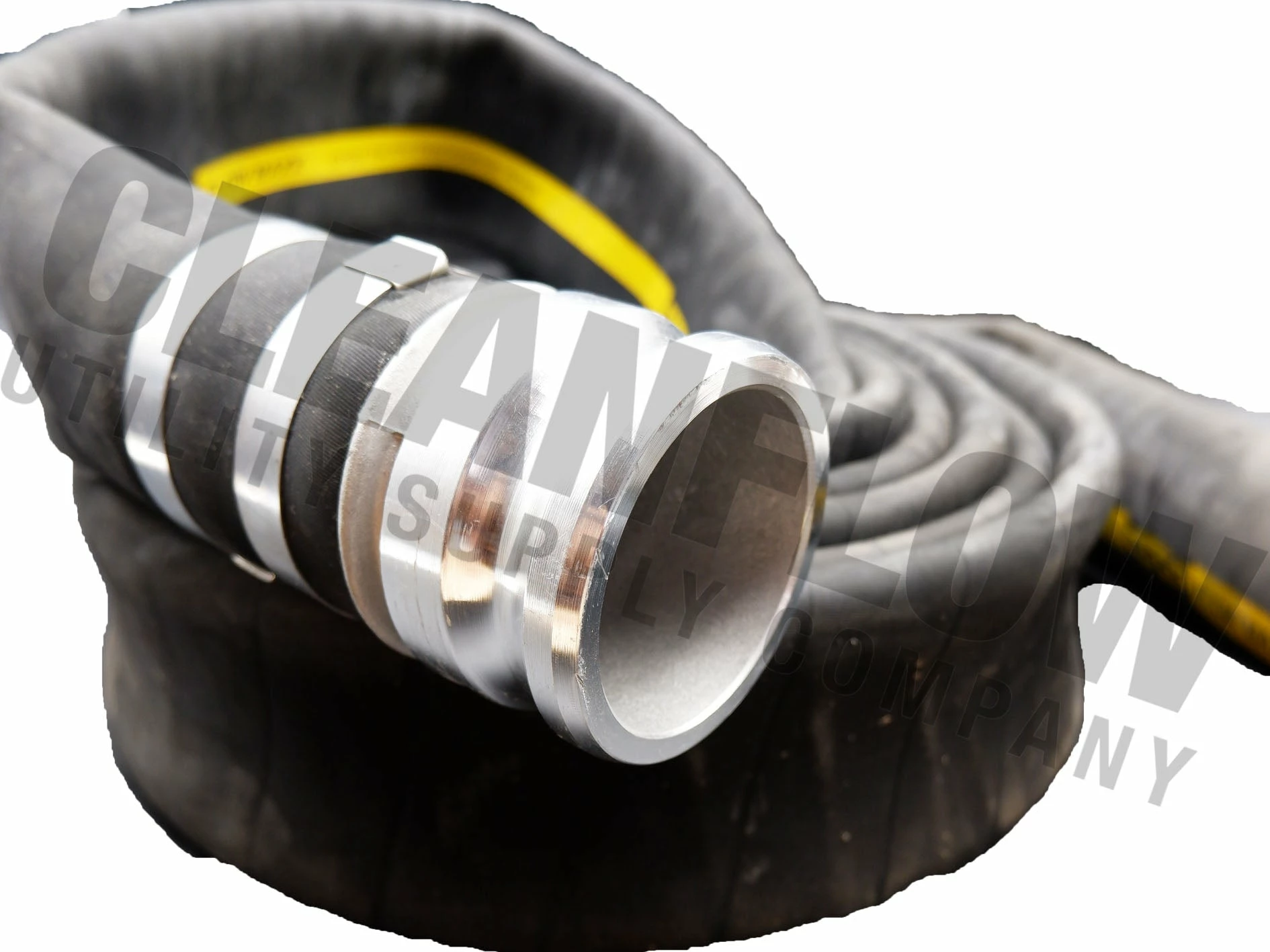This pre-fabricated discharge hose assembly come complete with aluminum Camlock Type C (female) and Camlock Type E (male) connectors installed. The camlocks are crimped onto the hose for maximum retention and strength.