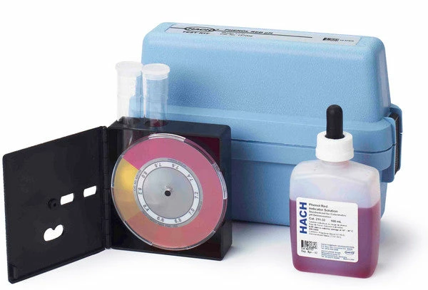 Hach Phenol Red pH Test Kit Model 17H | 6.5 – 8.5 pH is a simple, low-cost color disc test kit for determining mid-range pH between 6.5 and 8.5. This kit provides pH measurements 0.1 increments.