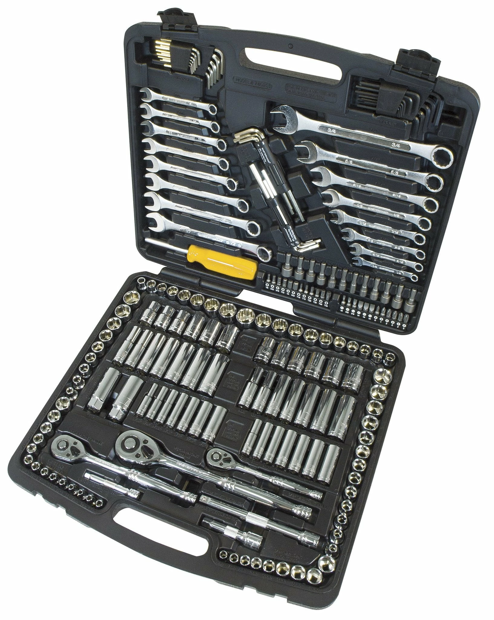 ITC Mechanic’s Tool Set contains 1/4″, 3/8″, and 1/2″ Chrome Vanadium sockets and ratchets, regular and deep S.A.E. and Metric sockets in 6 point, and 12 point. This kit also includes combination wrenches, hex keys, nut setters, and screwdriver bits in a convenient blow molded case.