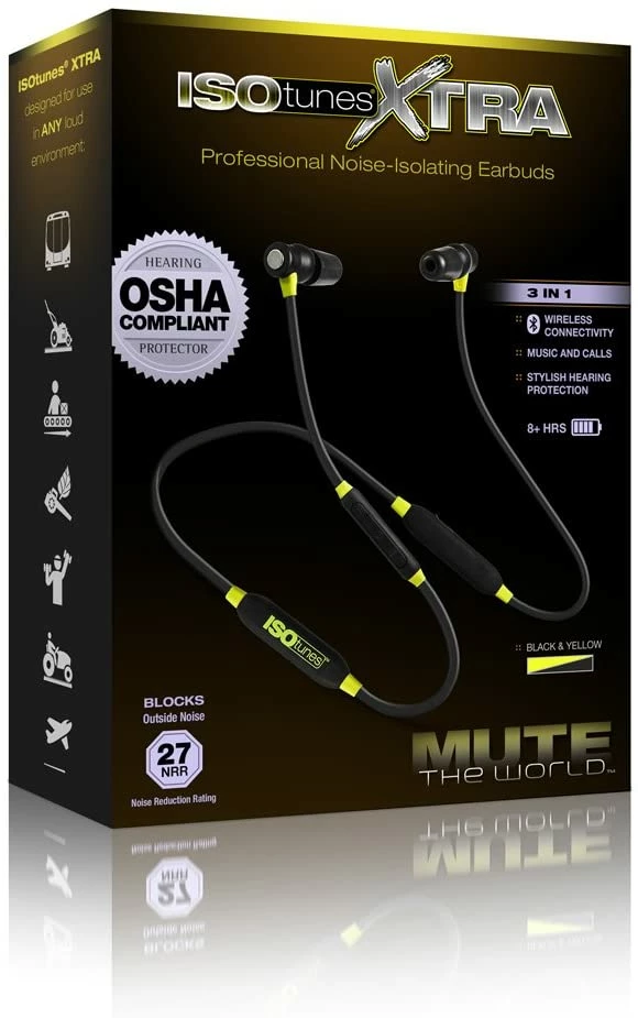 ISOtunes Xtra Bluetooth Professional hearing protection headphones are ANSI-certified and OSHA-compliant with a 27 dB Noise Reduction Rating (NRR) and ISOtunes SafeMax Technology.