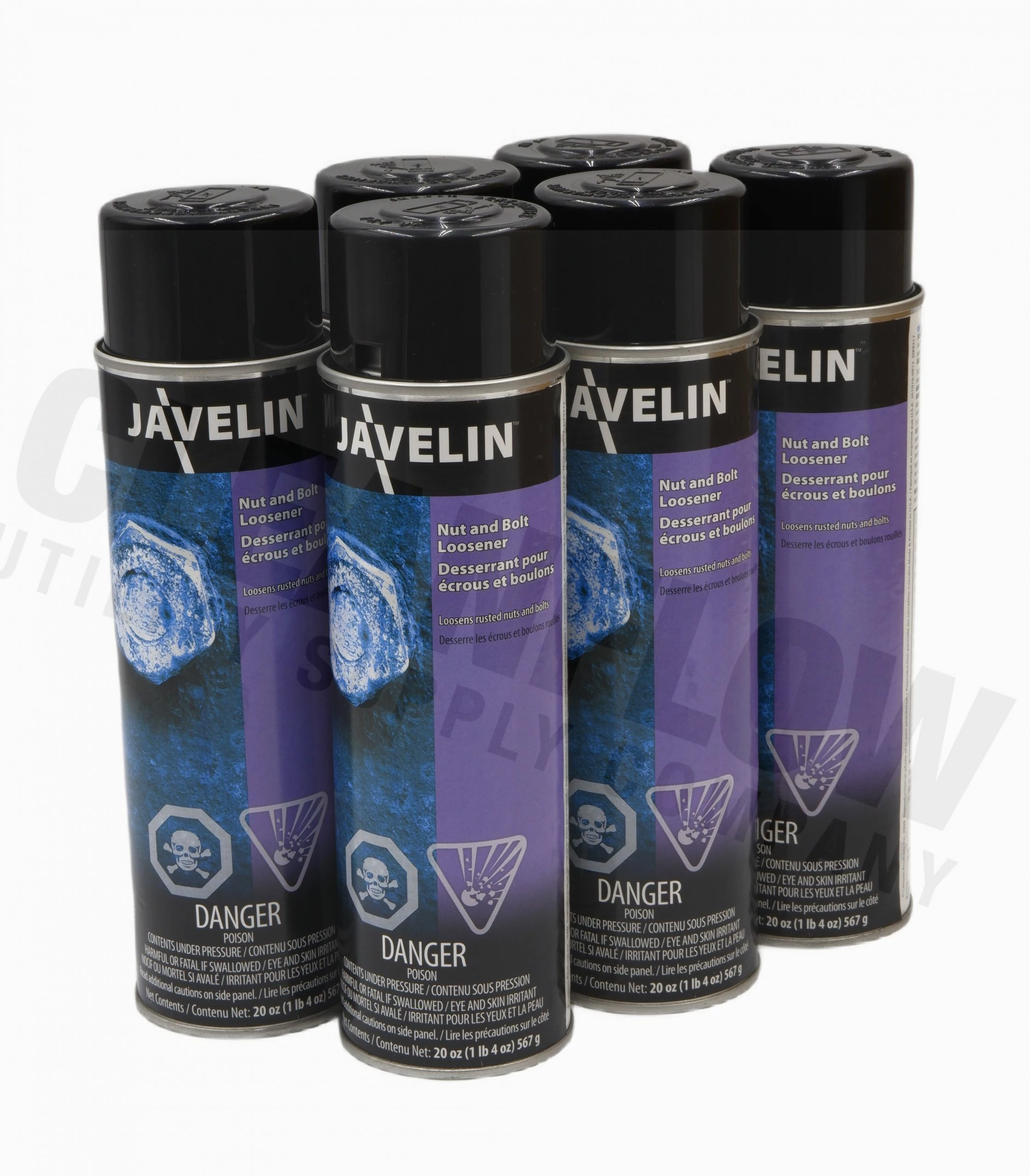 Javelin Nut and Bolt Loosener is a high-performance penetrating oil that cleans, lubricates, protects and displaces water. There is no better penetrating oil on the market today when working in damp, dirty, greasy, wet conditions. Faster than other leading brands at displacing water; Can be used to dry out electrical components such as relays, circuit breakers and shorted ignition systems. Big Blast Pin-Stream Delivery allows for precise application in difficult to reach areas.