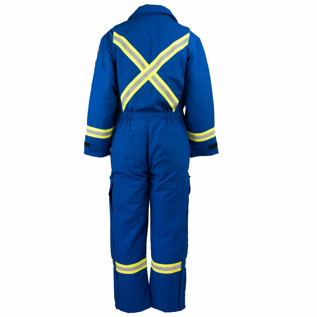 REFLECTIVE: 3M™ SCOTCHLITE™ SILVER REFLECTIVE MATERIAL ¾ INCHES STITCHED ON 2” ENHANCED VISIBILITY TRIM: 2 VERTICAL ON FRONT (FROM SHOULDER TO WAIST), “X” ON THE BACK THAT MEET AT SHOULDER, ALL AROUND WAIST AND 1 HORIZONTAL STRIPE ON EACH ARM AND LEG
