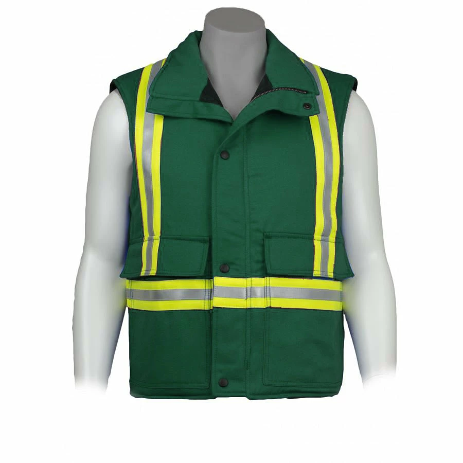 REFLECTIVE: 3M™ SCOTCHLITE™ SILVER REFLECTIVE MATERIAL ¾ INCHES STITCHED ON 2” ENHANCED VISIBILITY TRIM: 2 VERTICAL ON FRONT (FROM SHOULDER TO WAIST), “X” ON THE BACK THAT MEET AT SHOULDER, ALL AROUND WAIST