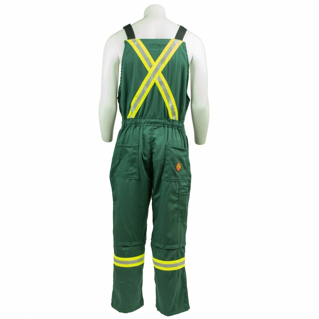 REFLECTIVE: : 3M™ SCOTCHLITE™ SILVER REFLECTIVE MATERIAL ¾ INCHES STITCHED ON 2” ENHANCED VISIBILITY TRIM: 2 VERTICAL ON FRONT (FROM SHOULDER TO WAIST), “X” ON THE BACK, ALL AROUND WAIST AND 1 HORIZONTAL STRIPE ON EACH LEG