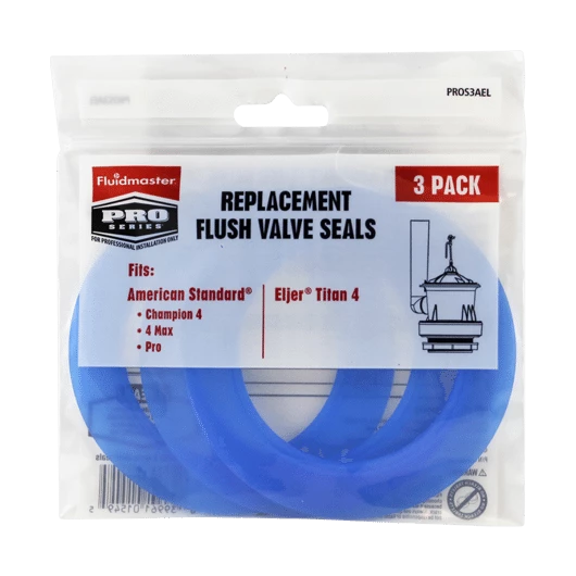 Fluidmaster Replacement Flush Valve Seals. 3 pack. Blue Colour. Fits American Standard Champion 4, 4 Max & Pro Flush Valves & Eljer Titan 4 Flush Valves.