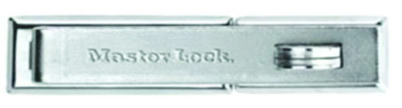 MasterLock Heavy-Duty Security Hasp has a 7-1/4″ hasp length and accepts padlocks with up to 7/16″ maximum shackle diameter.
