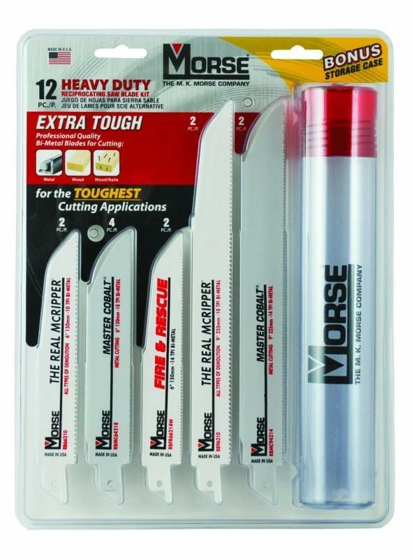Morse Reciprocating Saw Blade Assortment With Storage Case – 12 Pieces