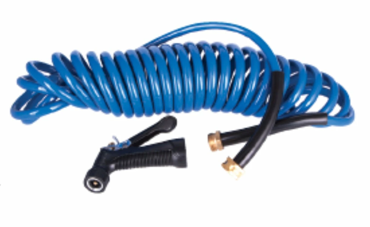 This compact, resilient hose will outlast and outperform conventional nylon self coiling hose. It is easier to work with and will bounce back into its original shape when kinked of crushed. It is a non-marking, oil and abrasion resistant hose that is highly recommended for a variety of industries.