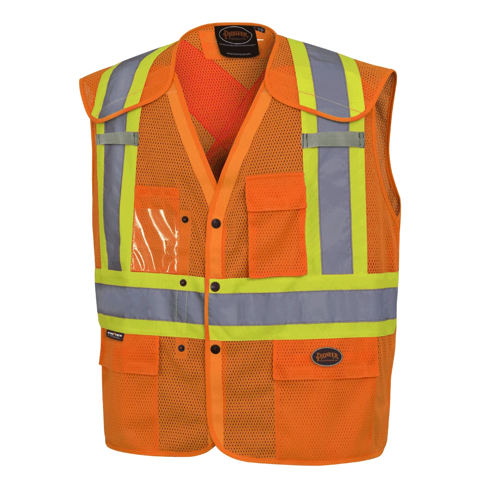 Pioneer Hi Viz Drop Shoulder Safety Vest With Snaps – Poly Mesh | Sizes Small – 5XL