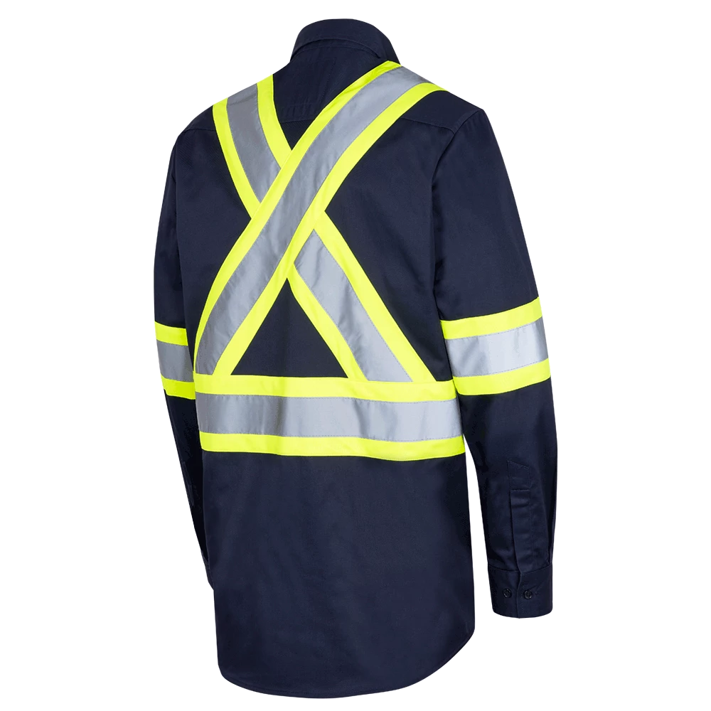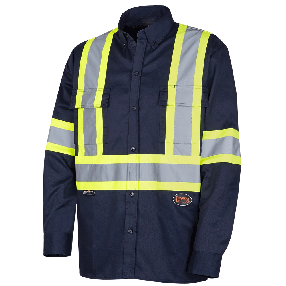 Pioneer Hi Viz Poly/Cotton Work Shirt | Navy | Sizes S – 4XL