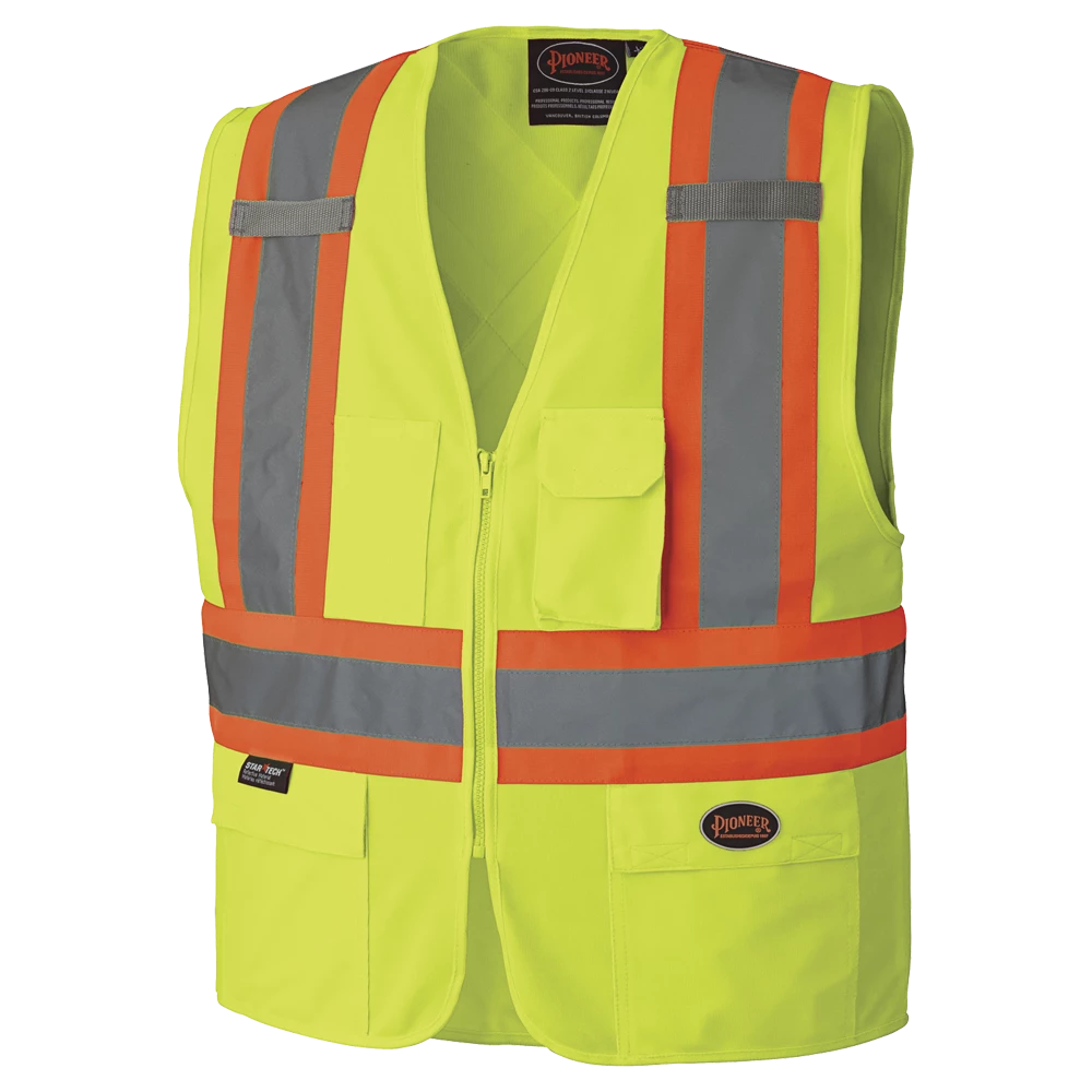 Pioneer Hi Viz Zipper Front Safety Vest – Tricot Poly | Sizes Small – 5XL Hi-Vis Work Wear