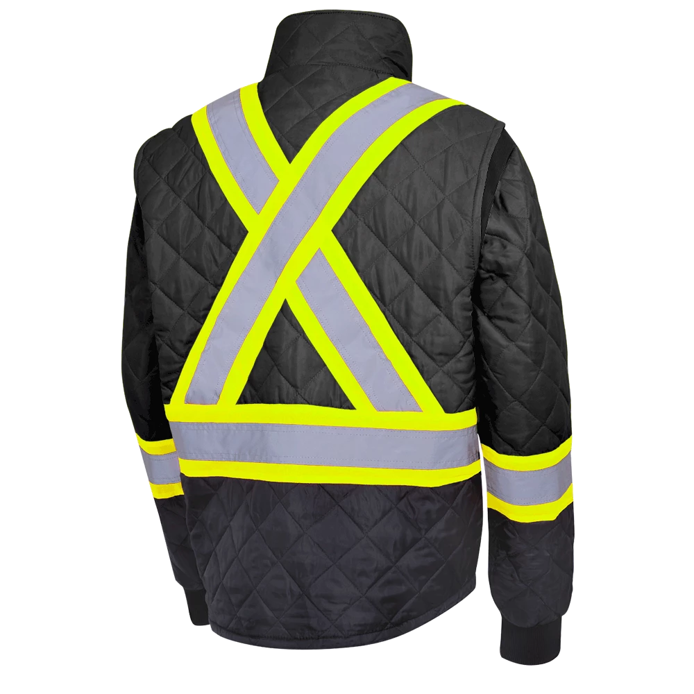 The Pioneer Hi-Viz Quilted Freezer Work Jacket meets CSA Z96-15 Class 2 Level 2 requirements for high visibility work clothing.