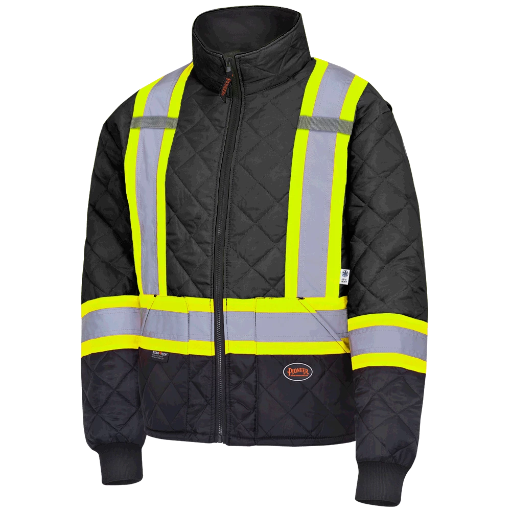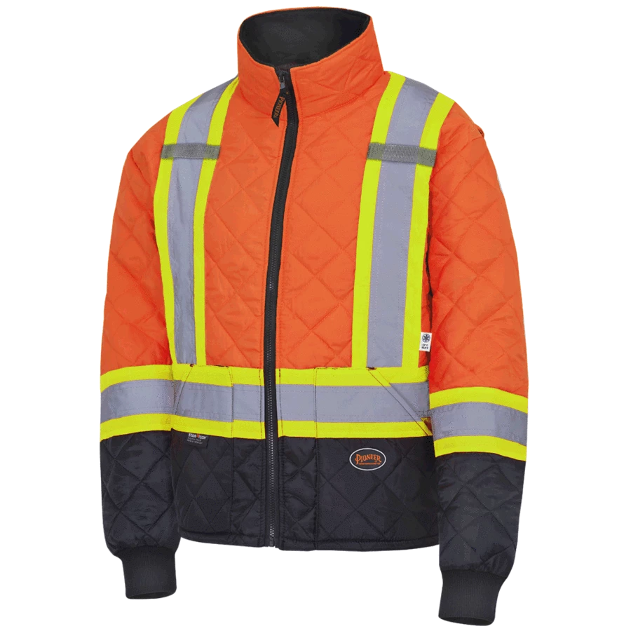 The Pioneer Hi-Viz Quilted Freezer Work Jacket is made with diamond quilted polyester with 3.5 oz (120 GSM) insulation. High Visibility markings are double-stitched StarTech™ reflective tape.