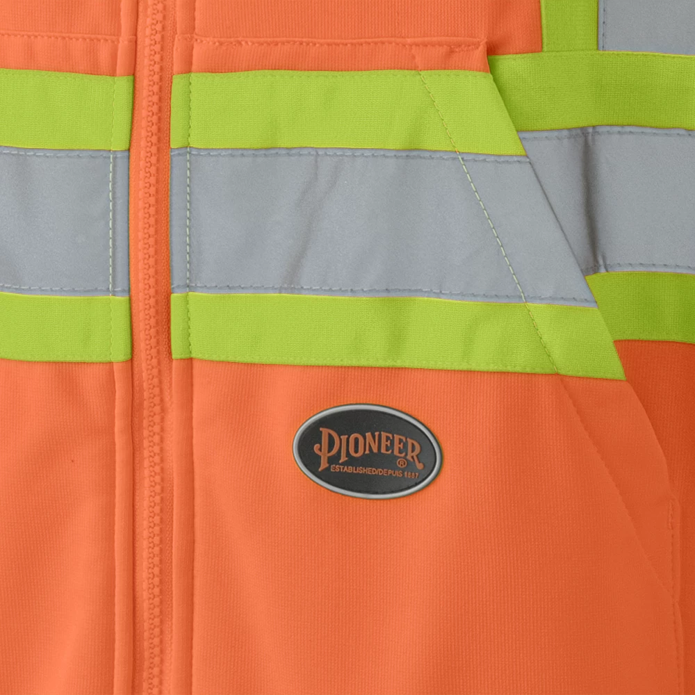 Pioneer Micro-Fleece Front-Zip Safety Work Hoodie is made with a soft 7 oz (240 GSM) micro fleece with 4-way comfort stretch to keep you warm and comfortable on the jobsite.