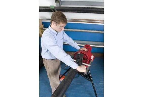 The RG6 Roll Groover is designed for use with the Reed 5301PD Power Drive, 38 RPM models only. The Reed RG6S Roll Groover is designed to form standard rolled grooves in steel, stainless steel and aluminum pipe, from 1-1/4” to 6”, in both Schedule 10 and Schedule 40. It also grooves PVC. The groove is formed by the groove roll which is fed into the pipe wall. The pipe is supported on the inside by a drive roll, which is relieved to permit pipe wall deformation. The formed grooves comply with the specifications required for mechanical coupling systems. The only adjustment required is for the depth of the groove.