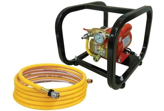 Reed Electric Hydrostatic Test Pumps are designed for pressure testing water systems such as water meters, plumbing lines, pressure vessels, solar systems and sprinkler systems, in both residential and commercial buildings. The output pressure is easily adjusted by turning a knob and watching the attached gauge. A built-in bypass allows for automatic water recirculation once the set pressure is reached. A steel cage protects the pump.