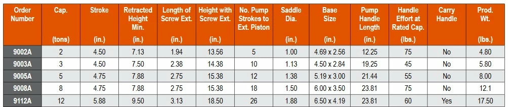 | Size | 2 Ton Jack, 3 Ton Jack, 5 Ton Jack, 8 Ton Jack, 12 Ton Jack |