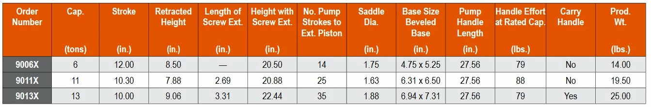 | Size | 6 Ton Jack, 11 Ton Jack, 13 Ton Jack |