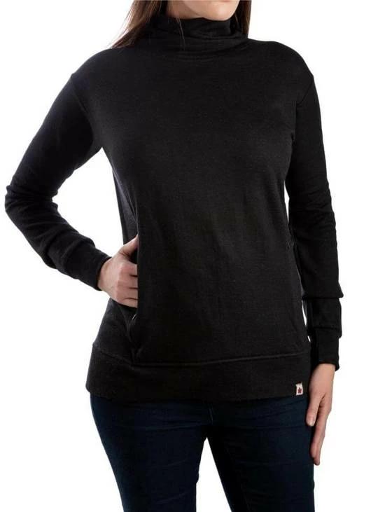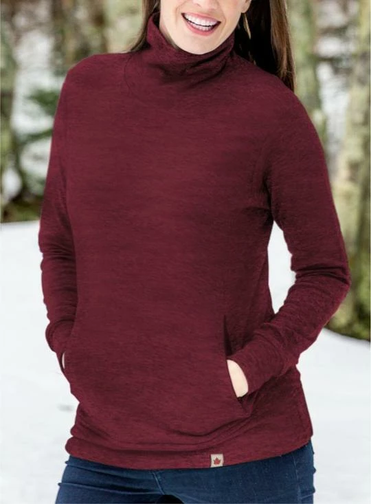 Our two-layer fabric is exceptionally warm. The inner layer is a cotton/ polyester blend so it’s very soft next to the skin. The outer layer is a merino wool/ polyester blend which provides warmth. The added performance of a antimicrobial treatment makes this top perfect for mid level outdoor activities like ice skating or make it your basic go-to sweater on an very cold day.