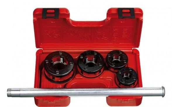 Super Ego 5 Piece Ratchet Pipe Threader Kit has an advanced design ratchet and high-specification die heads and dies to allow for easy threading in tight spaces. Set comes equipped within a robust carrying case.