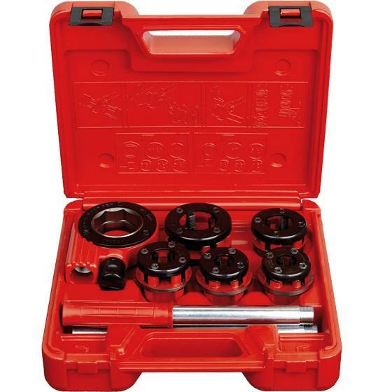 Super Ego 9 Piece Ratchet Pipe Threader Kit has an advanced design ratchet with high-specification die heads and dies to allow for easy threading in tight spaces. Set comes equipped within a robust carrying case.
