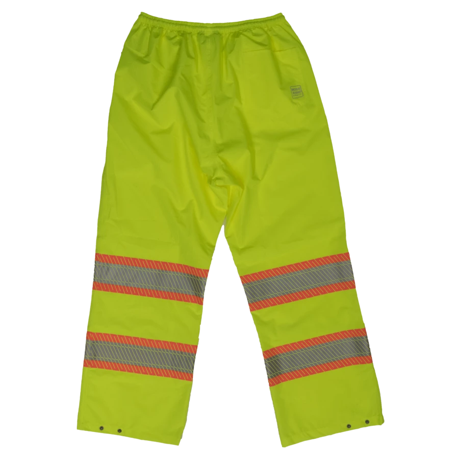 This packable rain pant goes with you. It tucks into an area smaller than a junior football. Simply unpack for an unrivaled safety rain pant whenever the need arises. Pair with our SJ05 Hi-Vis Packable Rain Jacket.
