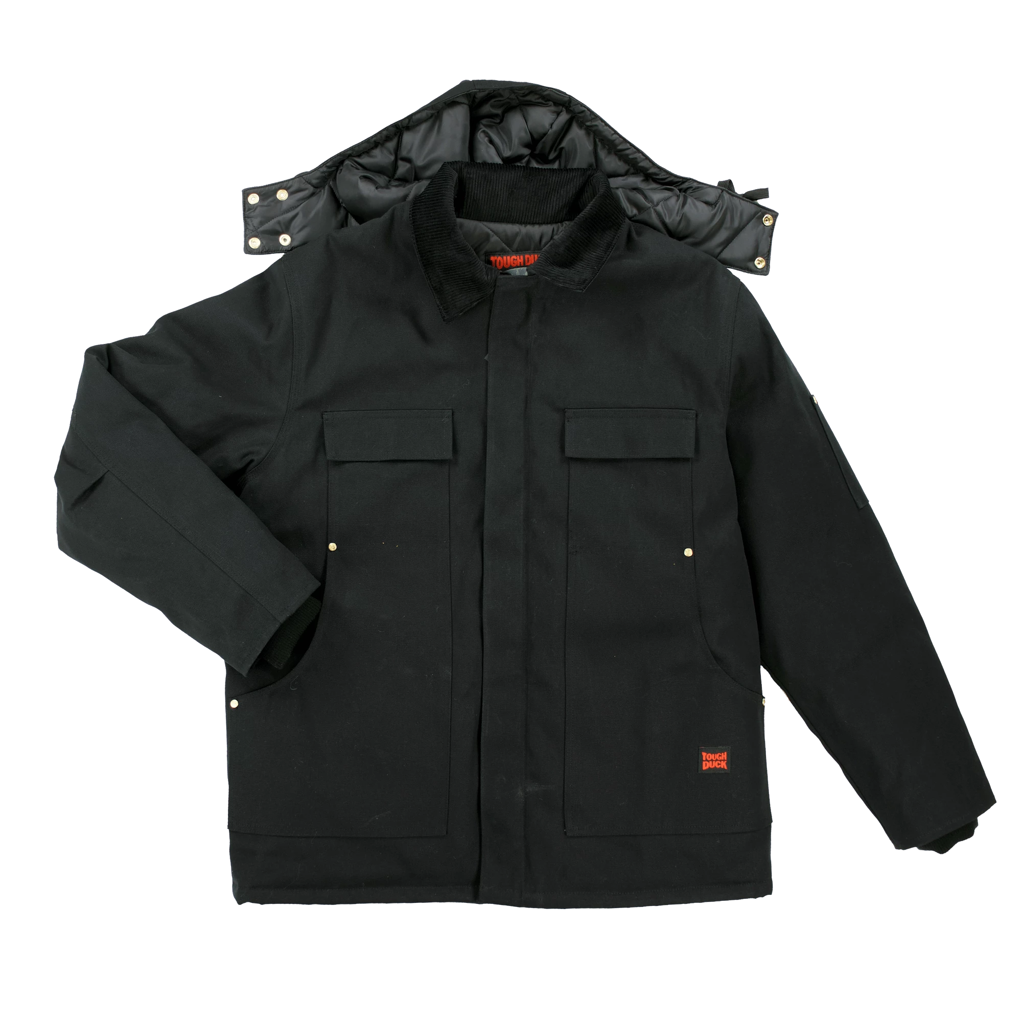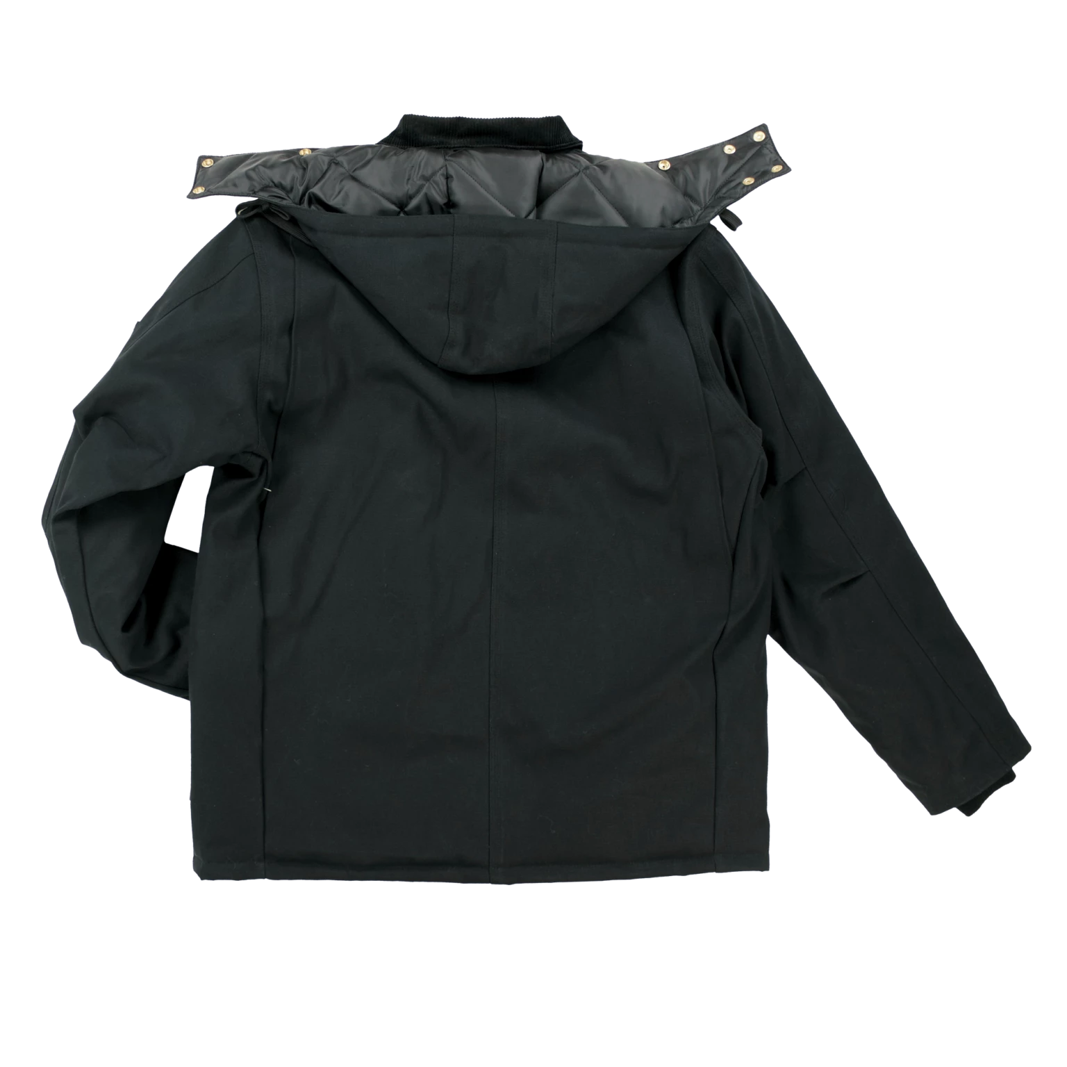 - Detachable hood with chin guard extension and adjustable snaps