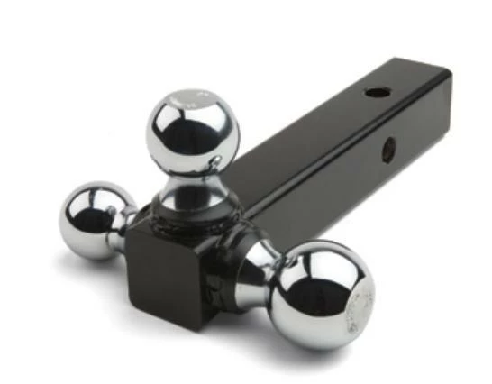 Solid steel 2″ bar with: 1-7/8″ (2000 lbs), 2″ (6000 lbs), and 2-5/16″ (10000 lbs) welded trailer balls. Black painted bar with chrome plated trailer balls. Uses 5/8″ pin.