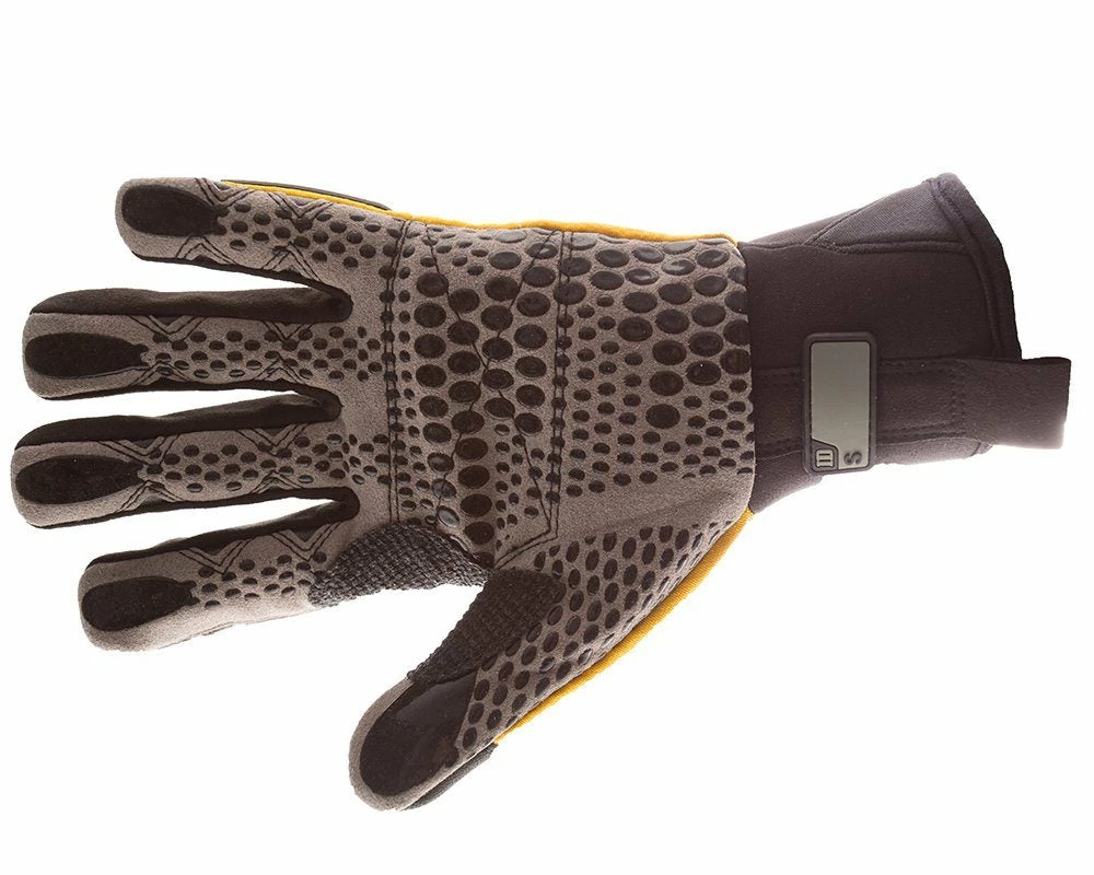 - High-visibility laminated fabric on the back of the hand repels oil & water