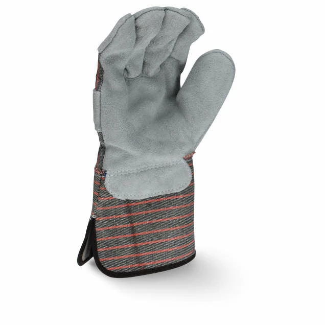 The Radians RWG3103G leather palm glove is a great economy option, offering a shoulder gray split cowhide leather palm, gunn cut with a wing thumb, leather knuckle strap, and an extended-length rubberized gauntlet cuff.