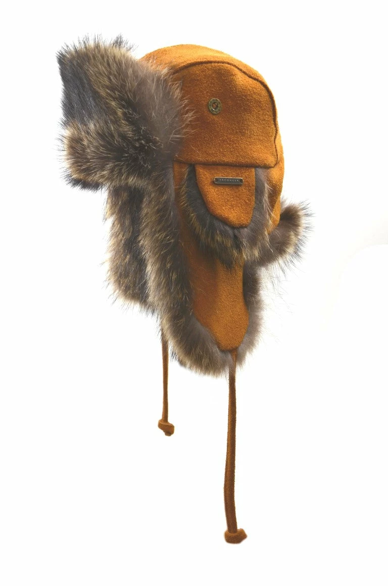 Raccoon long aviator with Canadian split moose leather cover and ties